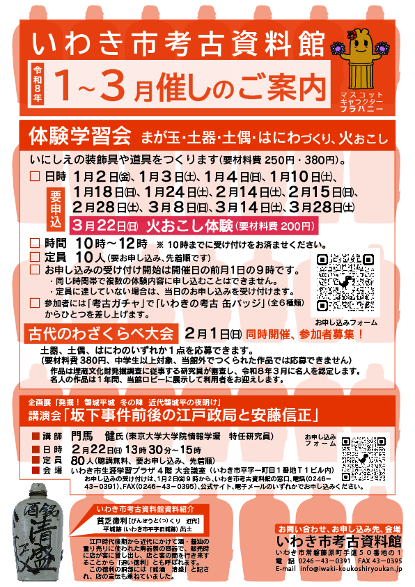 電話0246-43-0391 FAX0246-43-0395 E-mail info@iwaki-koukoshiryoukan.jp